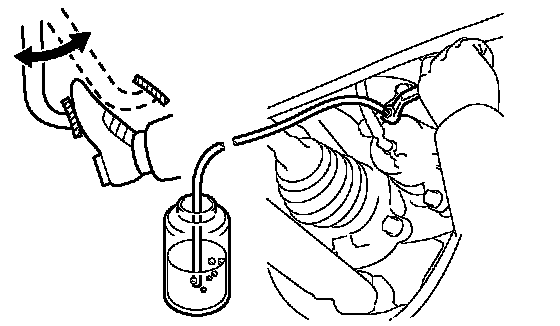 3) Depress the pedal several times, and then loosen the bleeder plug with the pedal depressed.
