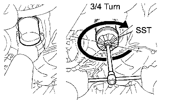 d) Using SST, tighten the oil filter.