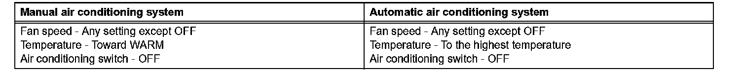 1) Set the air conditioning as follows while warming up the engine.