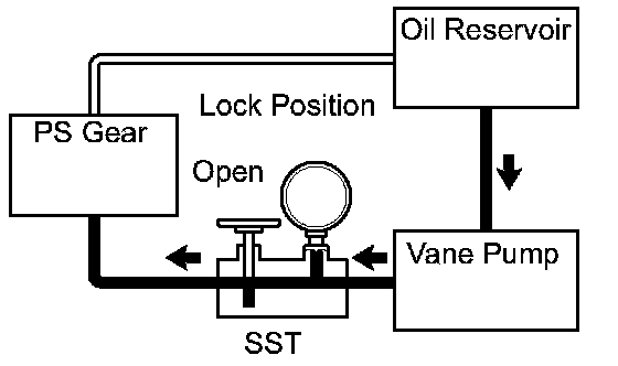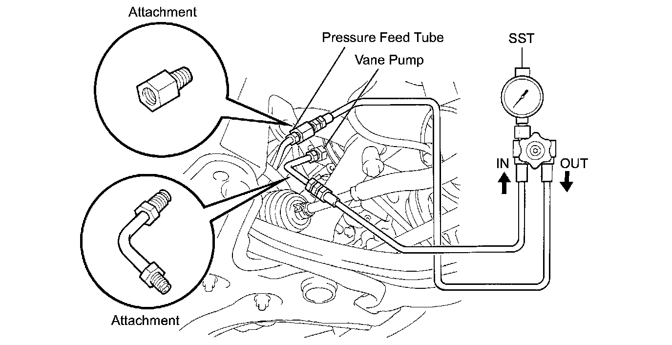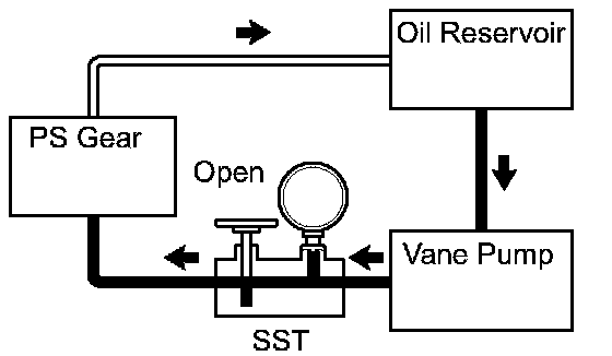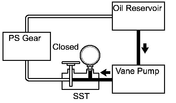 f) With the engine idling, close the valve of SST and observe the reading on SST.