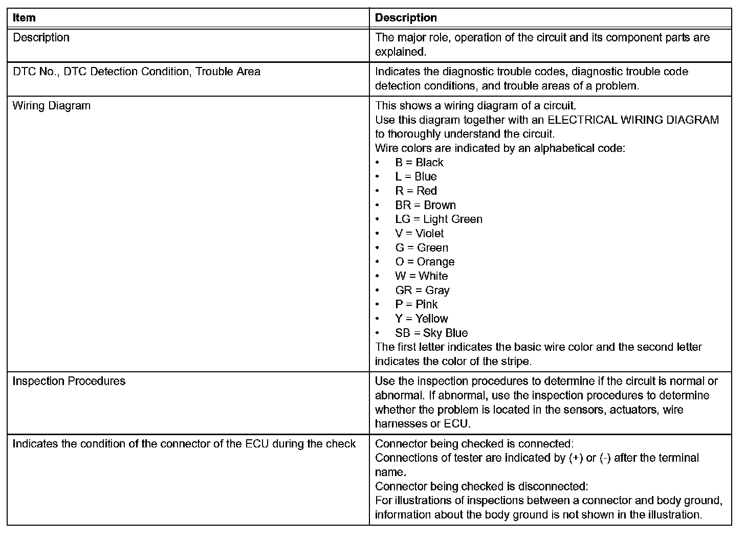 A description of the main areas of each circuit inspection is as given.