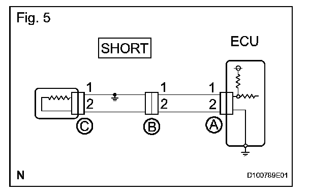 CHECK FOR SHORT CIRCUITa. If the wire harness is ground shorted (Fig. 5), locate the section by conducting a resistance check with the body ground.