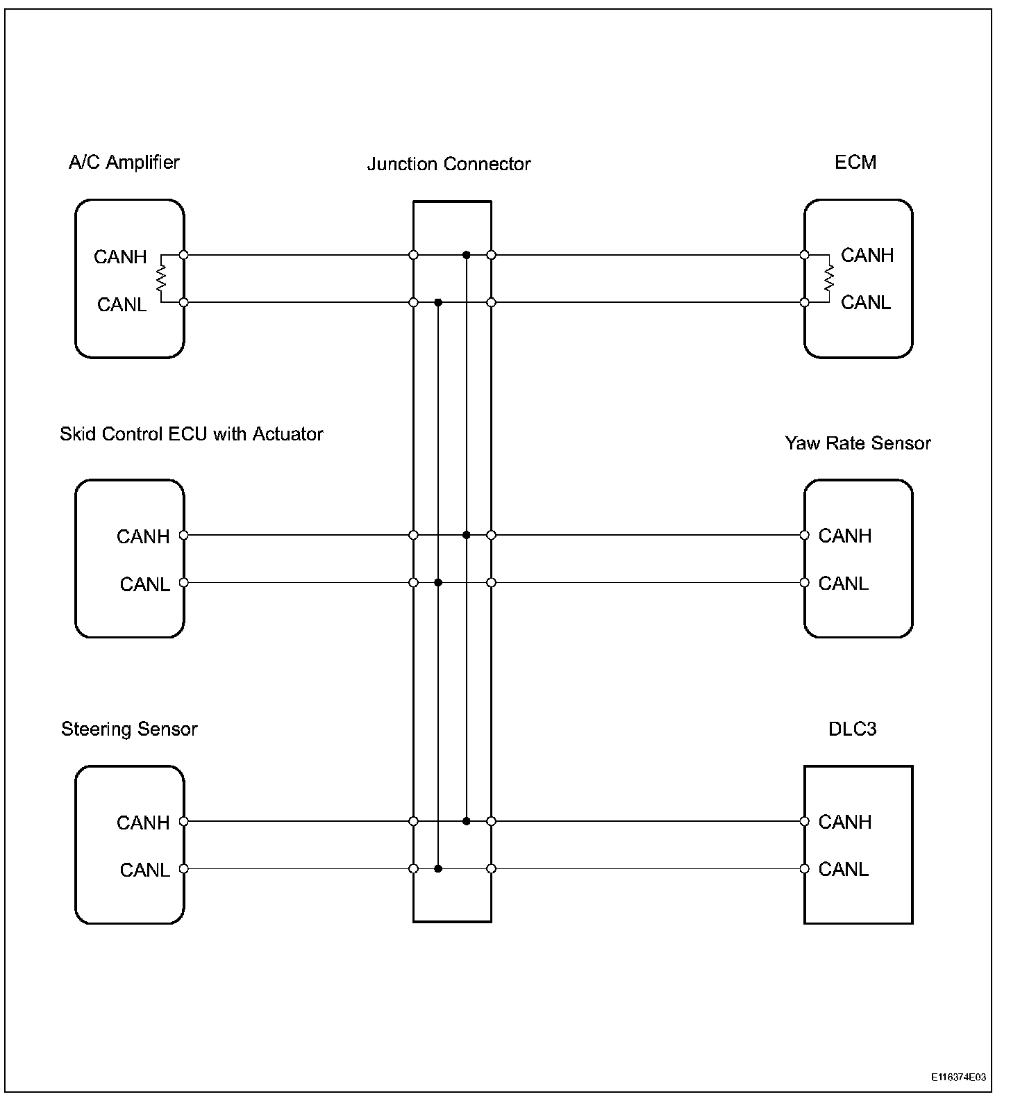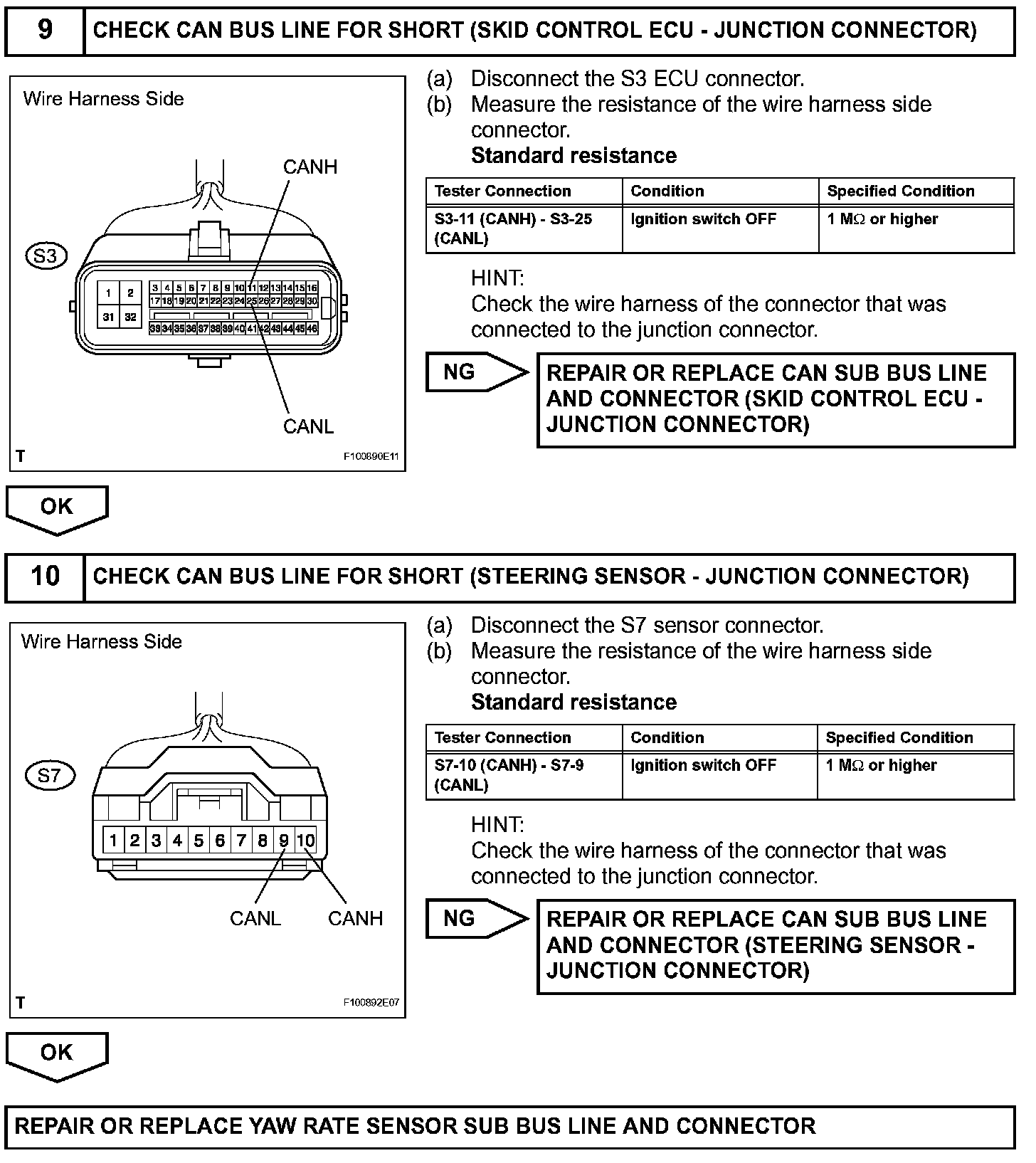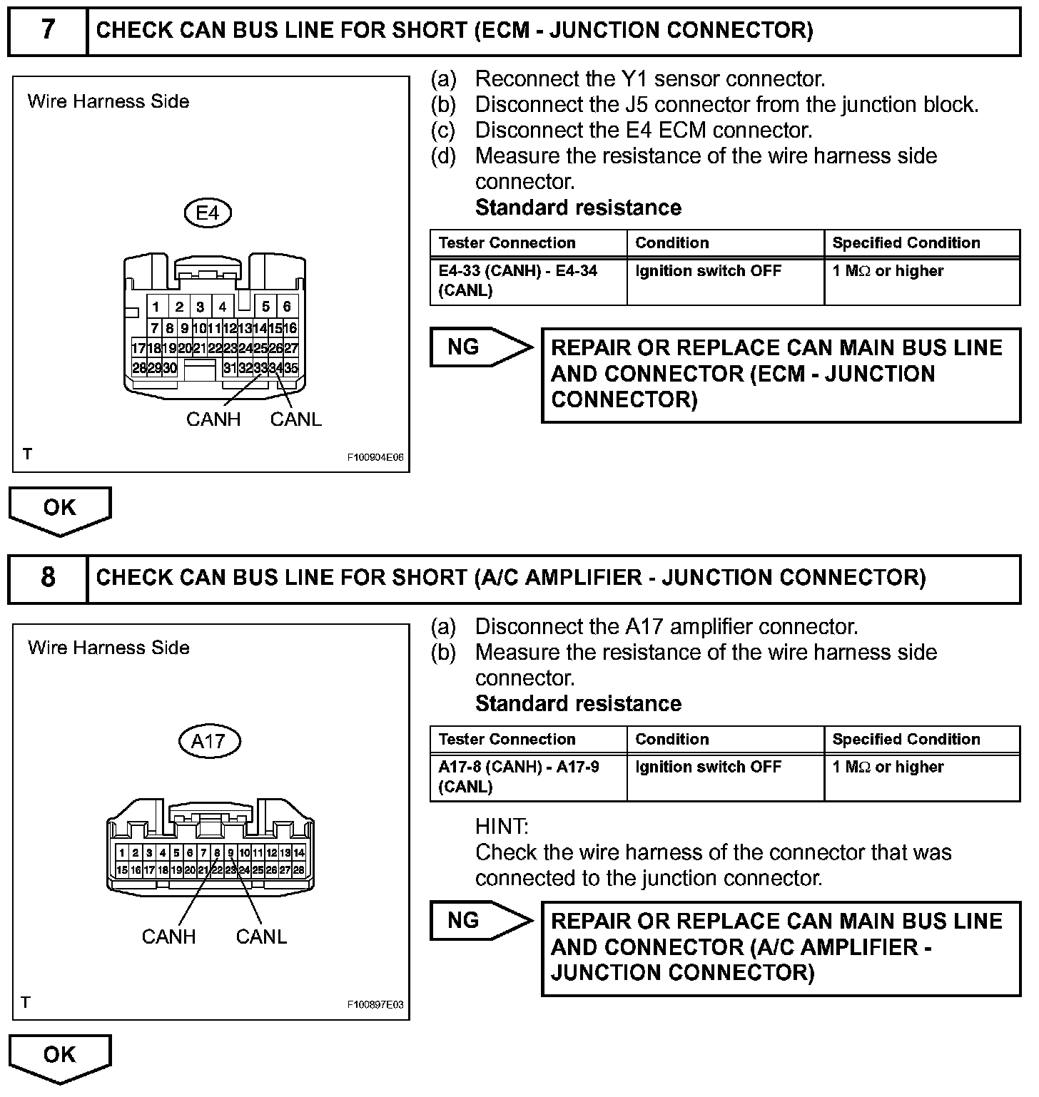 Short in CAN Bus LinesDESCRIPTIONThe CAN bus lines are considered to be shorted when the resistance between terminals 6 (CANH) and 14 (CANL) of the