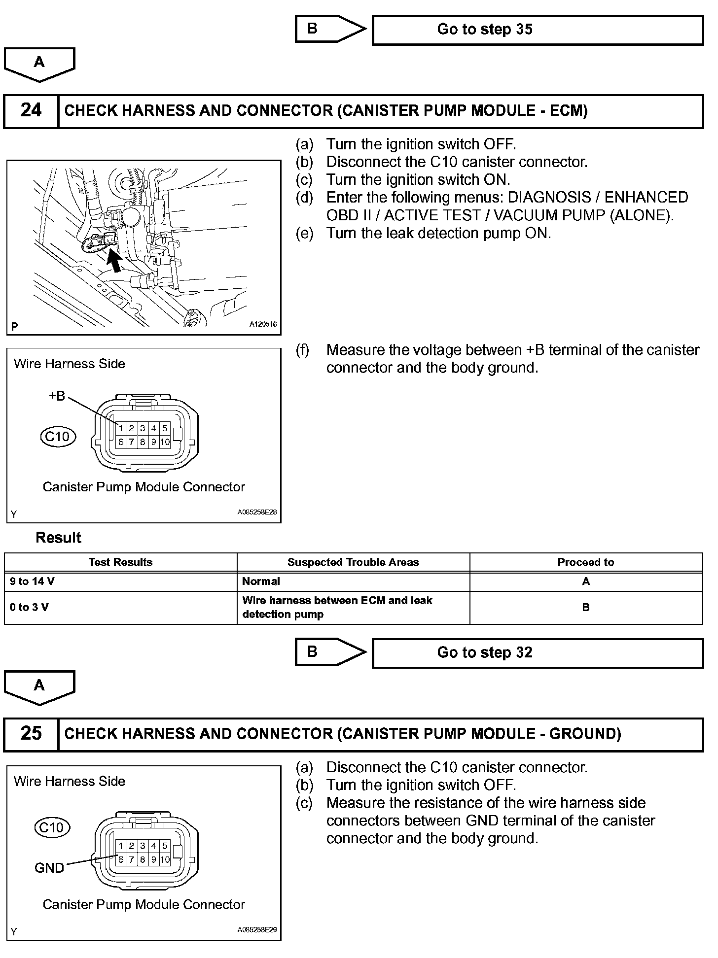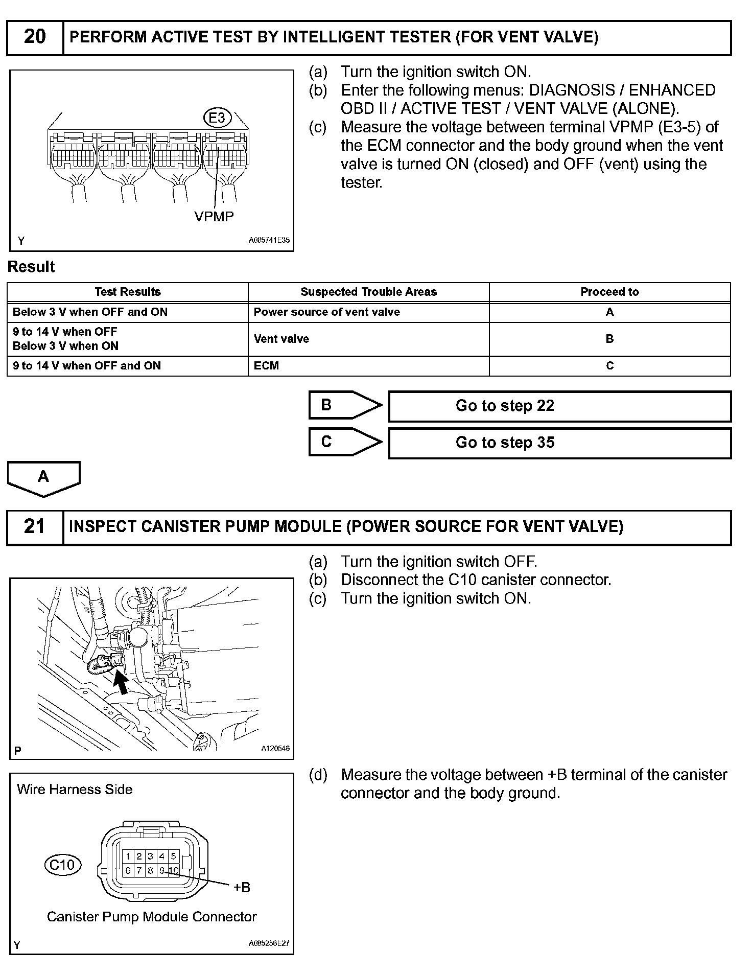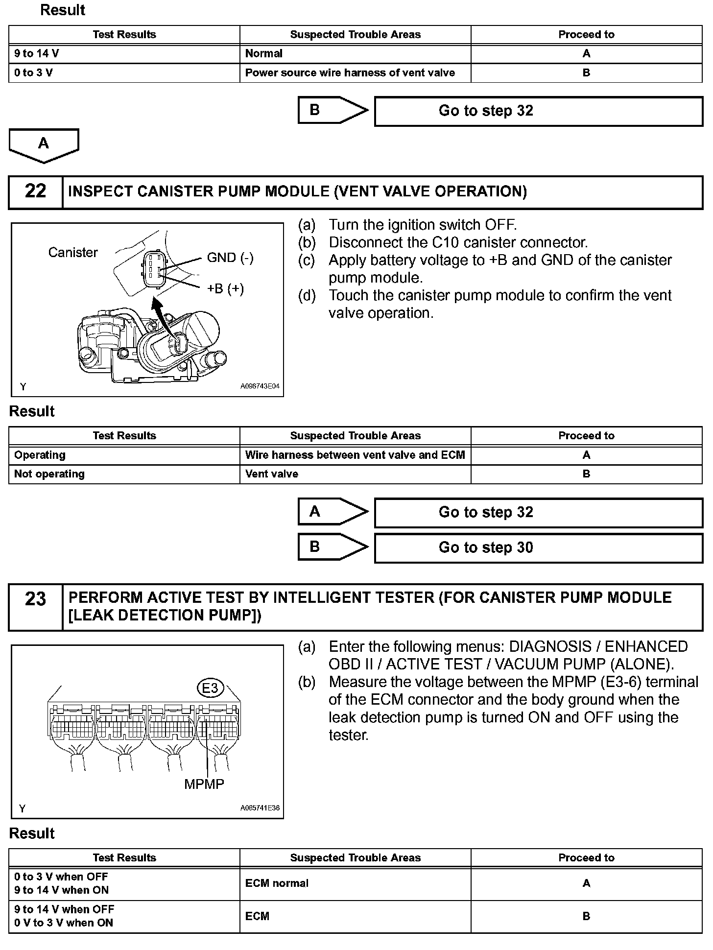 The leak detection pump creates negative pressure (vacuum) in the EVAP system and the pressure is measured. Finally, the ECM monitors for leaks from the EVAP system and malfunctions in both the canister pump module and purge VSV, based on the EVAP pressure.
