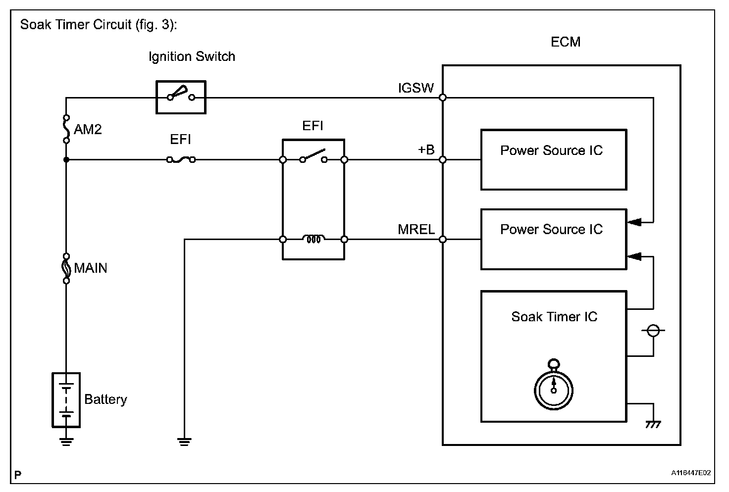 The vent valve turned OFF (open) and the EVAP pressure is then measured. If the variation in the pressure is less than 0.5 kPa (3.75 mmHg), the ECM interprets this as the purge VSV being stuck closed, and illuminates the MIL and sets DTC P0441 (2 trip detection logic).