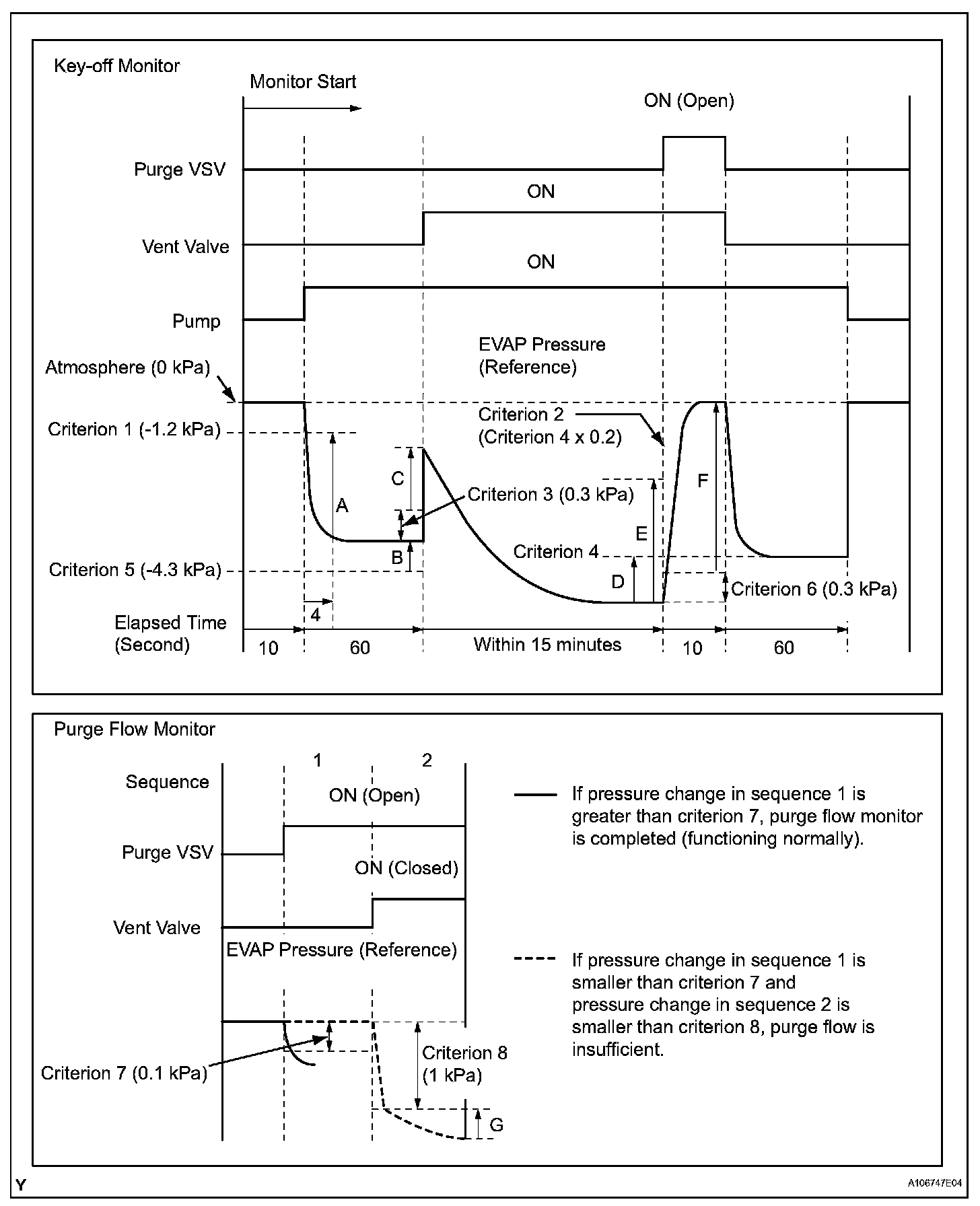 While the engine is running and the purge Vacuum Switching Valve (VSV) is ON (open), the ECM monitors the purge flow by measuring the EVAP pressure change. If negative pressure is not created, the ECM begins the 2nd monitor.