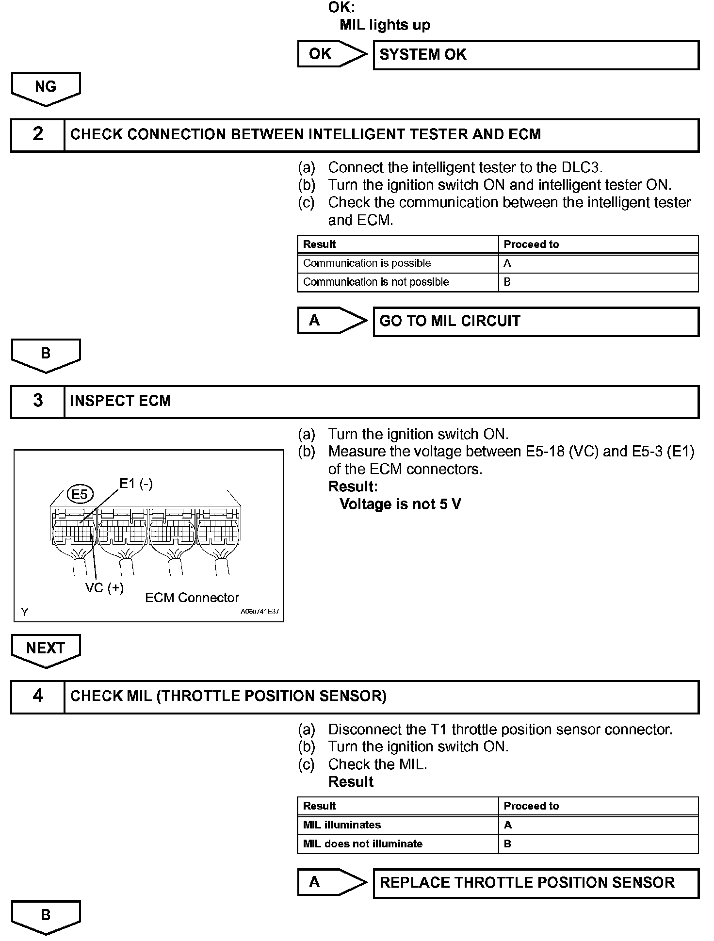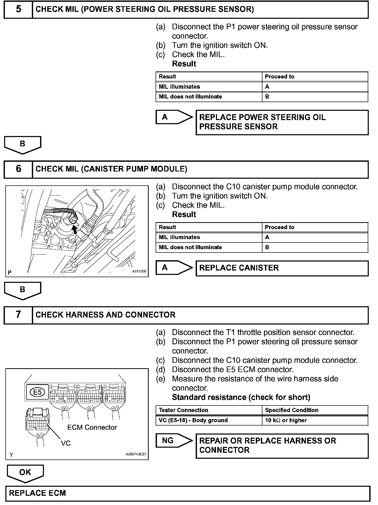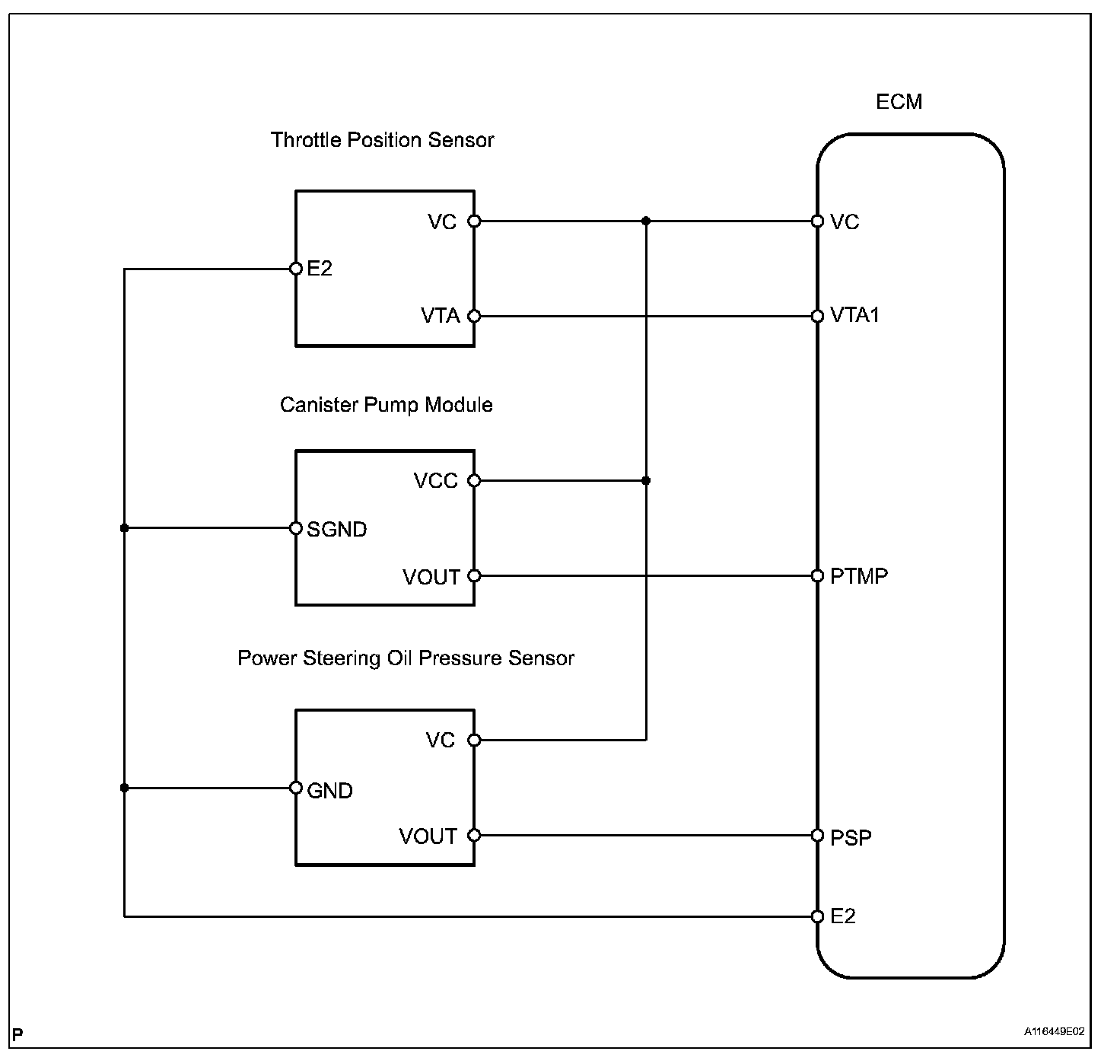 The VC voltage (5 V) is generated in the ECM. The voltage is used to supply power to the throttle position sensor, canister pump module, etc.