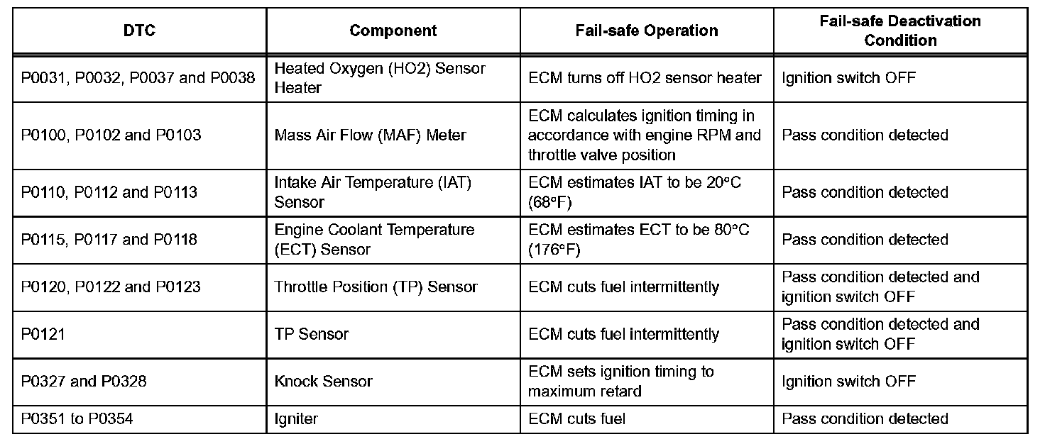 If any of the following DTCs are set, the ECM enters fail-safe mode to allow the vehicle to be driven temporarily.