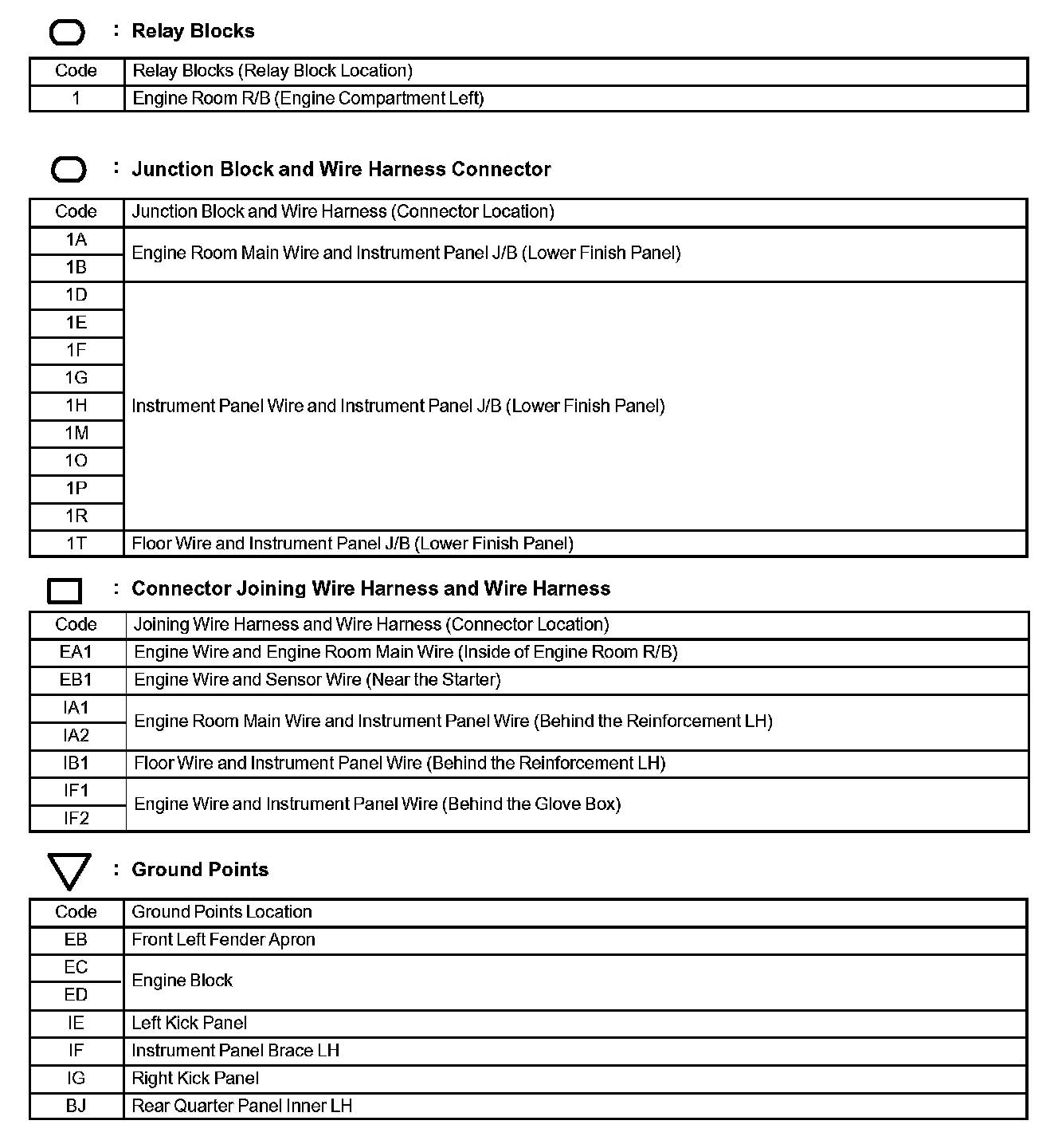 Locations: The locations of components, connectors, ground points, and splices referred to within these diagrams can be found at Vehicle Locations. Locations