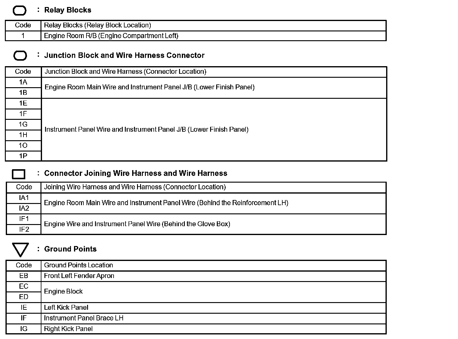 Locations: The locations of components, connectors, ground points, and splices referred to within these diagrams can be found at Vehicle Locations. Locations