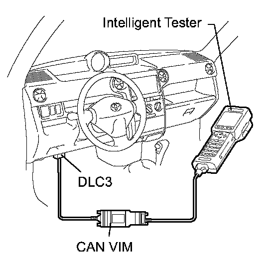 c) Connect the intelligent tester to the CAN VIM. Then connect the CAN VIM to the DLC3.