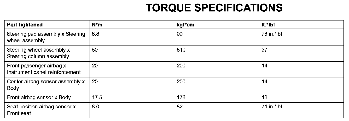 Supplement Restraint System-Torque Specifications: