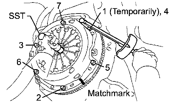 Clutch cover bolts 19 Nm (195 kgf-cm, 14 ft. lbs.)