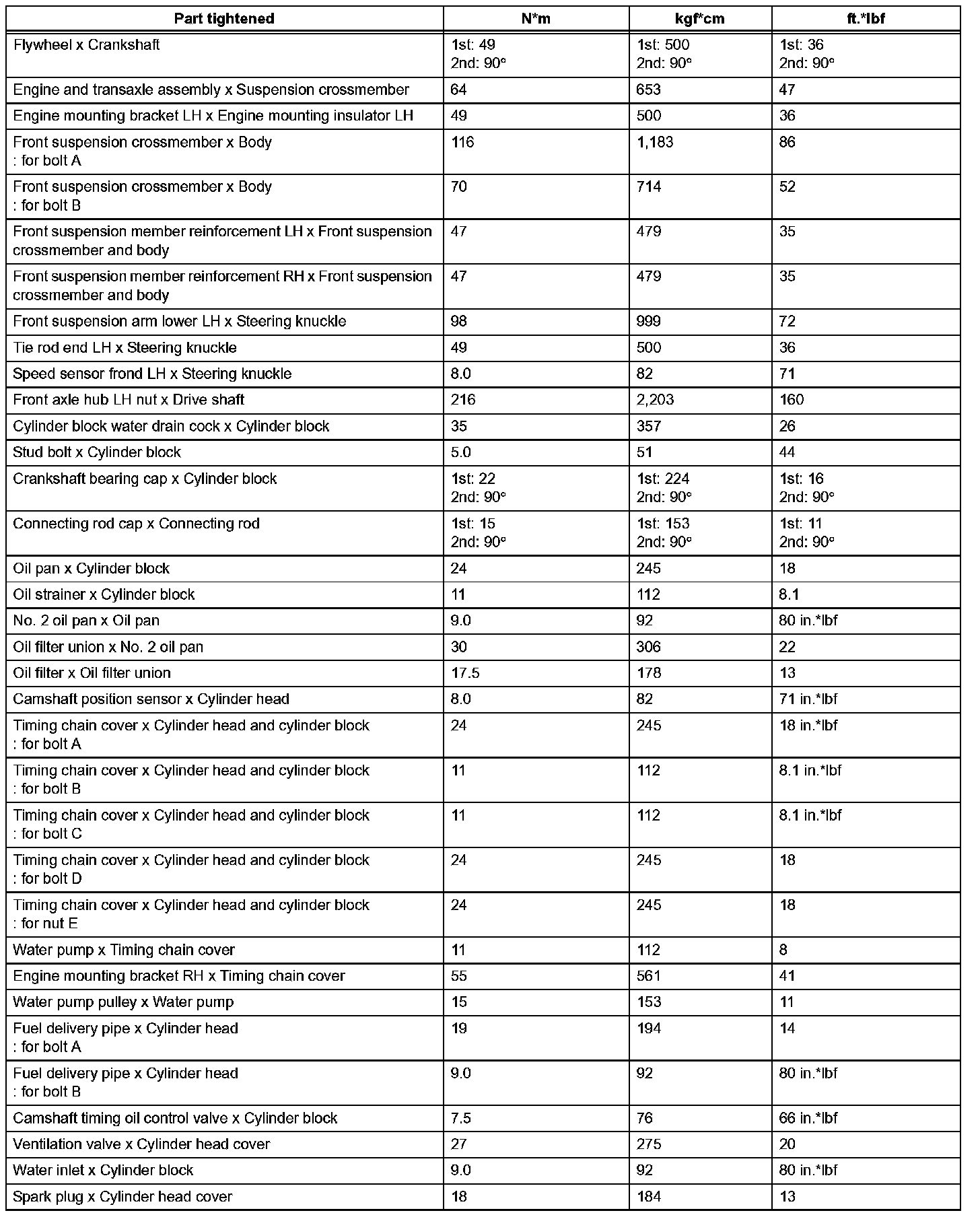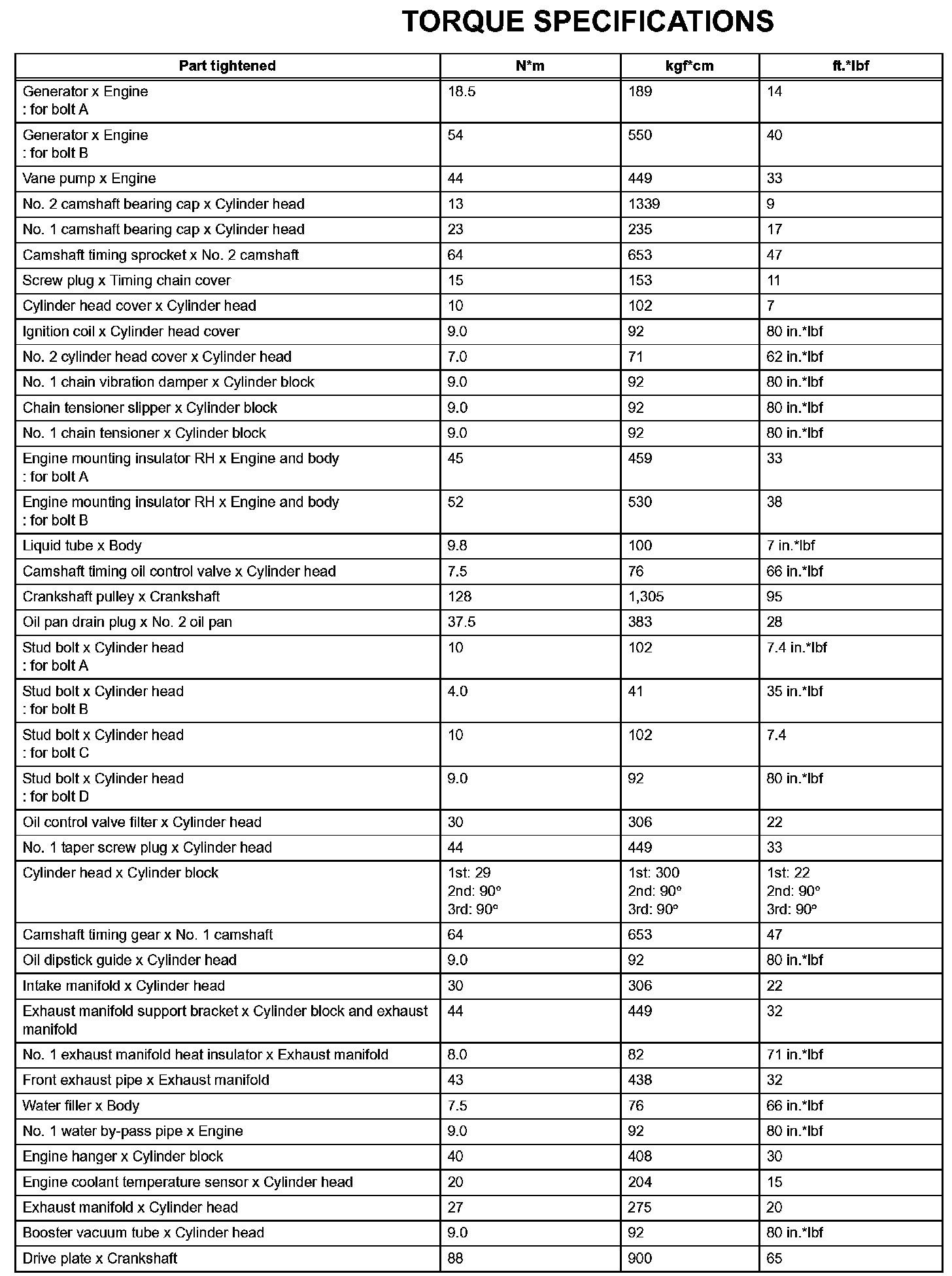 Engine Mechanical-Torque Specifications (Part 2):