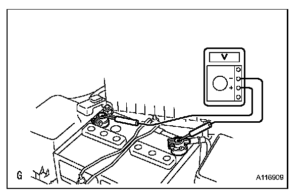3. Connect the voltmeter's positive (+) lead to positive (+) terminal B of the battery. 4. Ground the voltmeter's negative (-) lead.