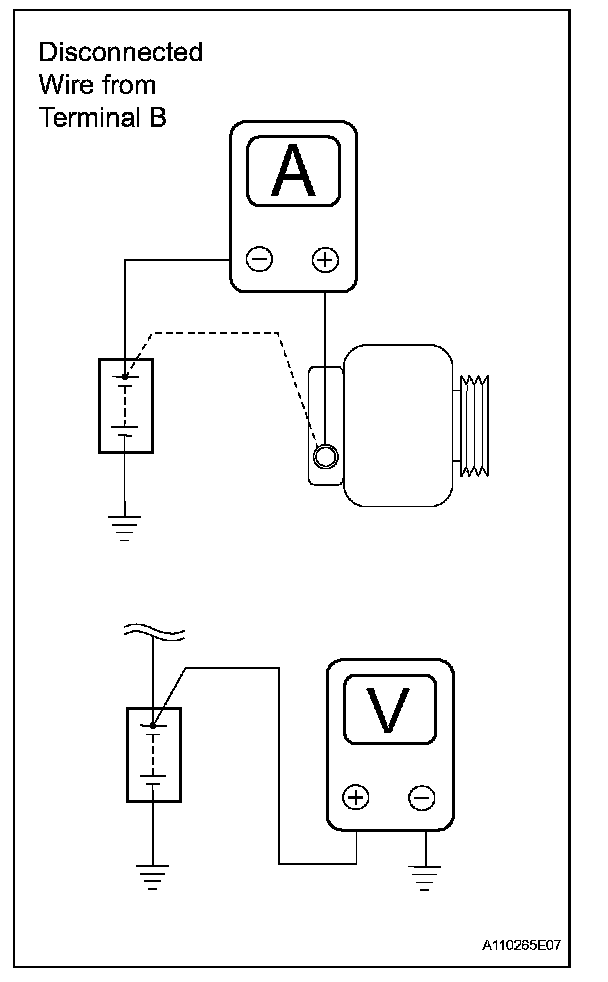 1. Disconnect the wire from terminal B of the generator and connect it to the negative (-) lead of the ammeter.