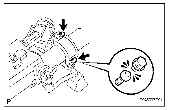 c. Using a screw extractor, remove the 2 bolts, clamp and steering column upper with switch bracket.