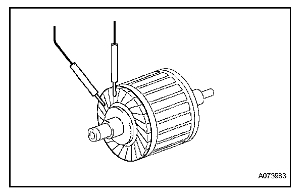 b. Measure the resistance between each segment of the commutator and armature coil core.