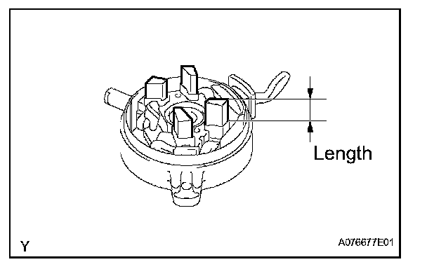 If the length is less than the minimum, replace the starter commutator end frame assembly.