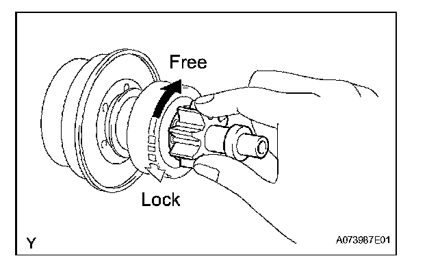 b. Rotate the pinion gear clockwise, and check that it turns freely. Try to rotate the pinion gear counterclockwise and check that it locks.