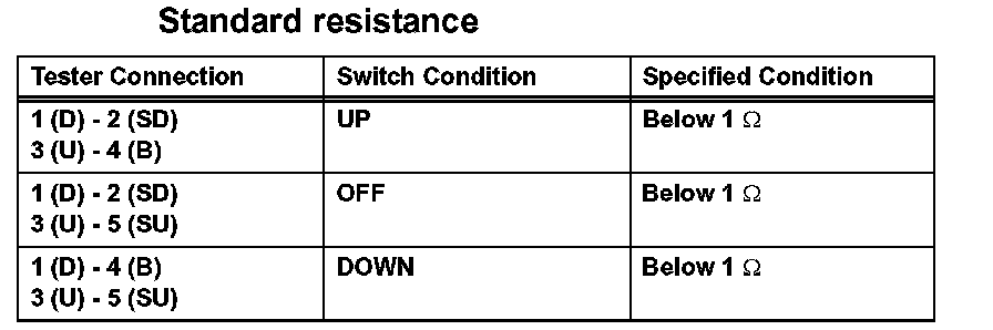 a. Measure the resistance between each terminal of the connector when the switch is operated.