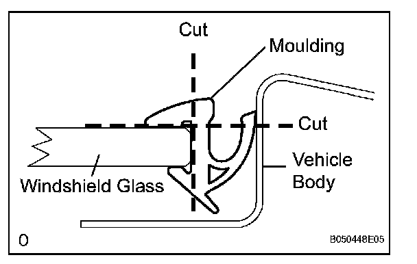 a. Using a knife, cut off the windshield moulding outside.