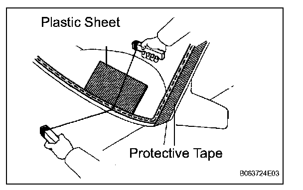 a. Apply protective tape to the outer surface of the vehicle body to prevent scratches.