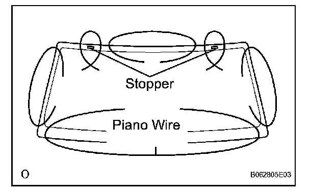 b. From the interior, insert a piano wire between the vehicle body and glass as shown in the illustration.