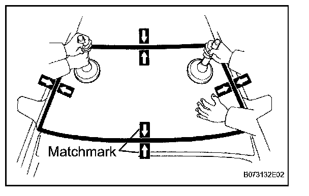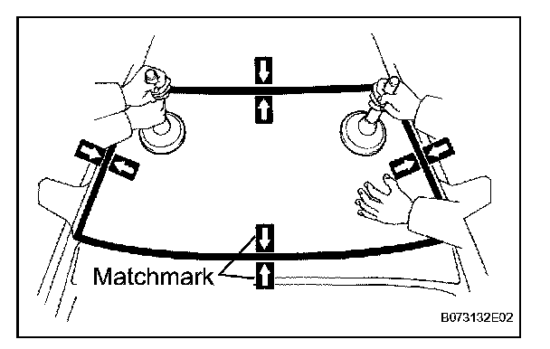 d. Place matchmarks over the glass and vehicle body on the locations indicated in the illustration.