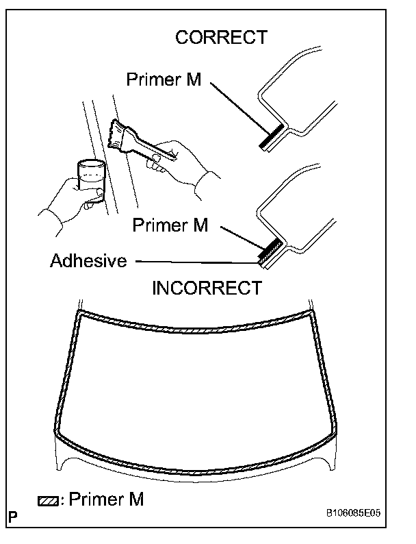 a. Using a brush or sponge, apply Primer G to the contact surface of the windshield glass.
