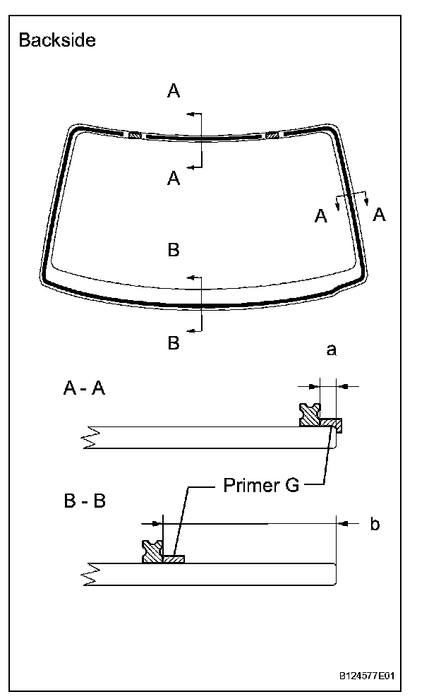 a. Apply Primer G to the glass where the glass adhesive dams will be installed.