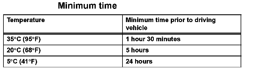 NOTE: Do not drive the vehicle within the time written in the table.