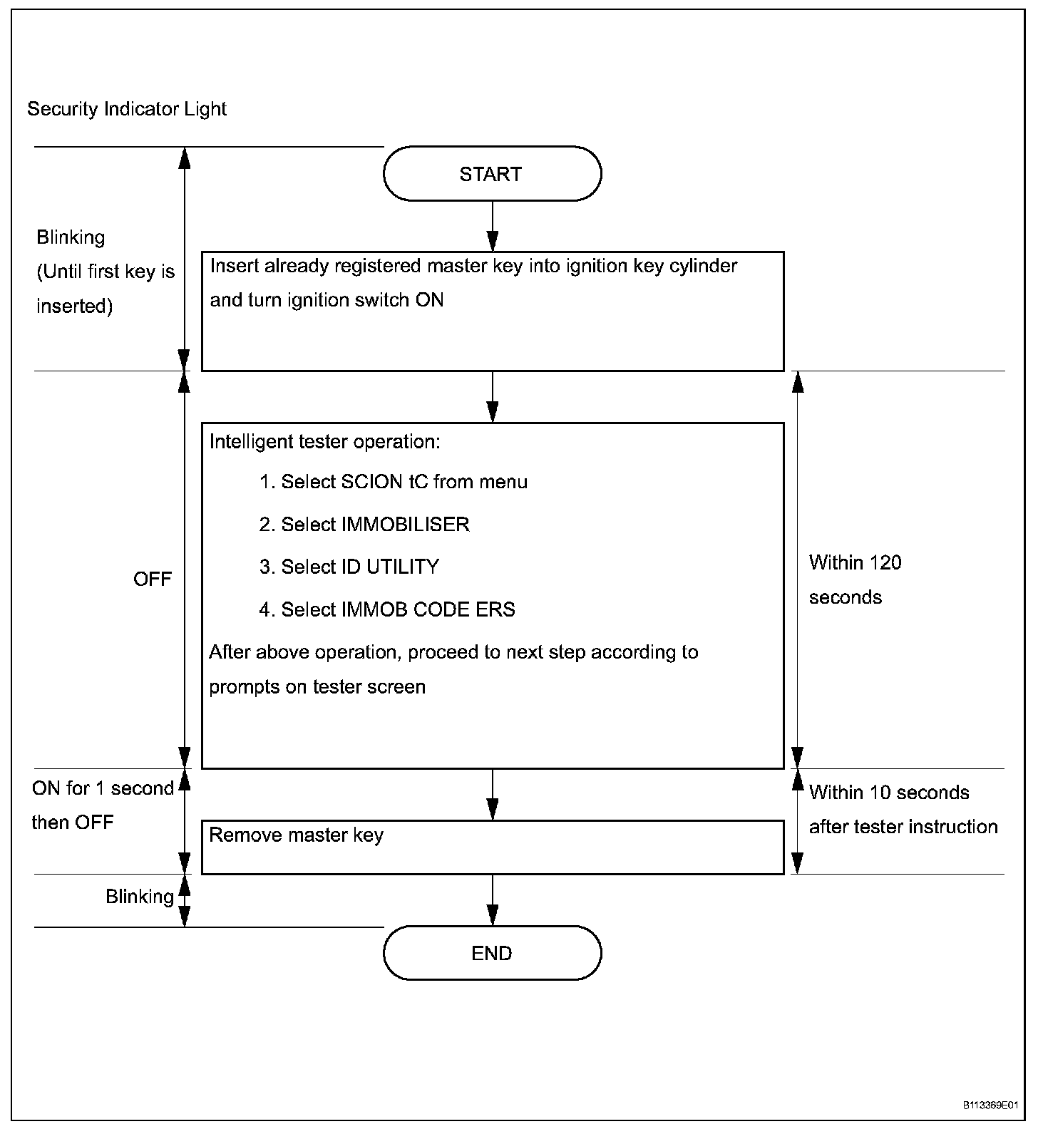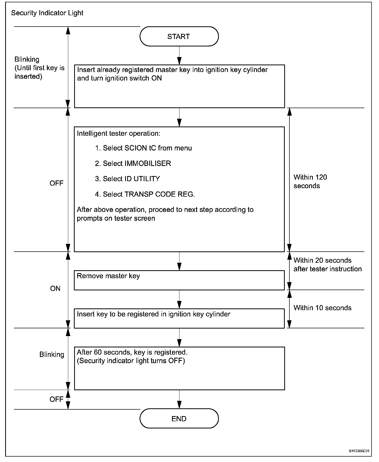 1. Turn the ignition switch ON and OFF 5 times within 10 seconds using the already registered master key.