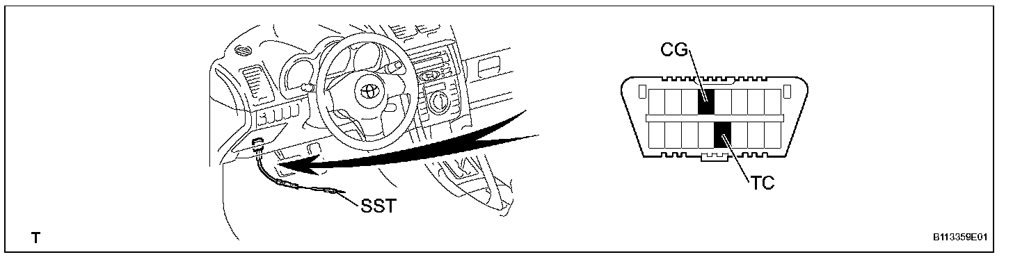1. Using SST, connect terminals TC and CG of the DLC3.