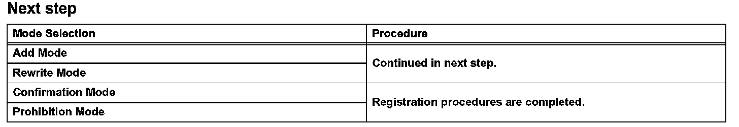 - Confirmation mode is used to confirm how many recognition codes have already been registered before another recognition code is registered.