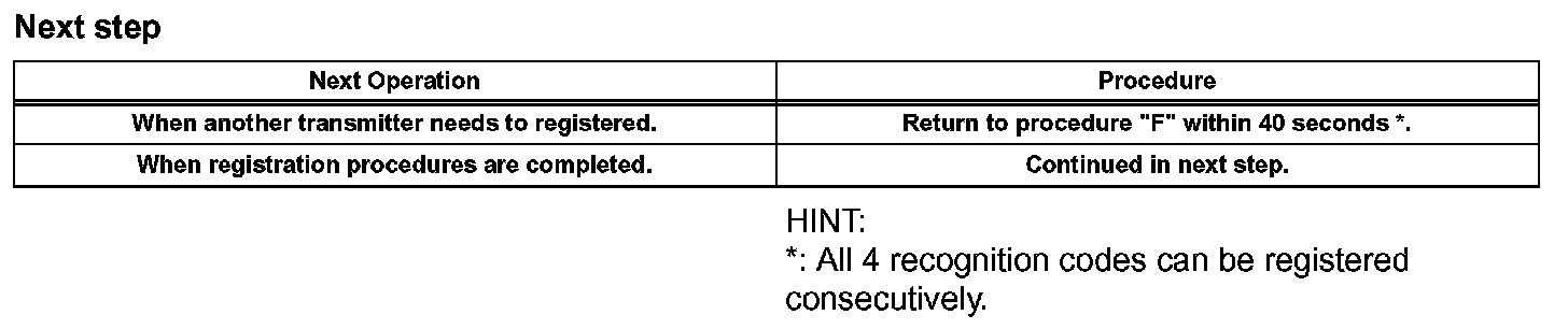i. Remove the key from the ignition key cylinder within 40 seconds after Procedure "D" (Procedure "E").