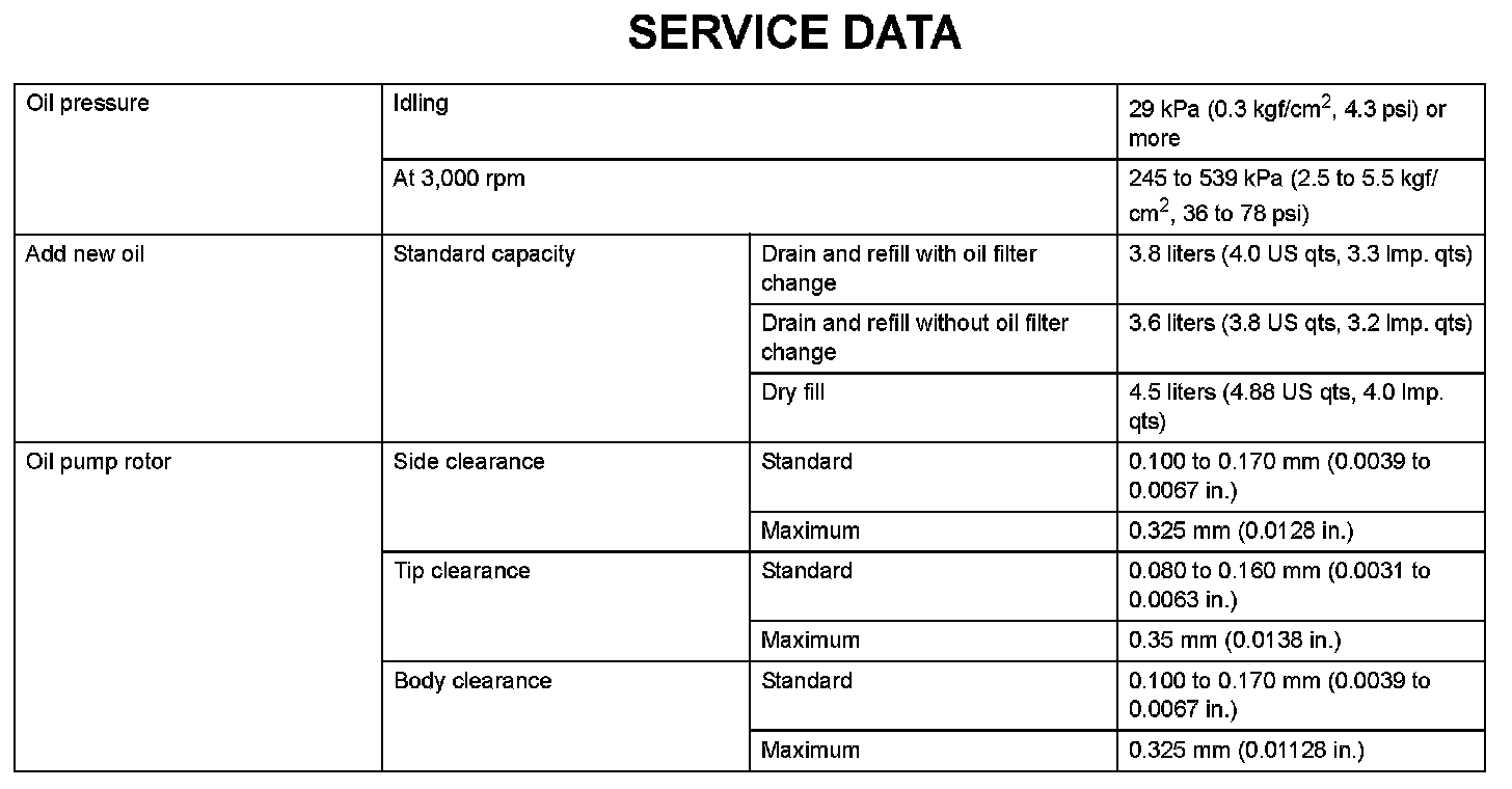 Lubrication - Service Data: