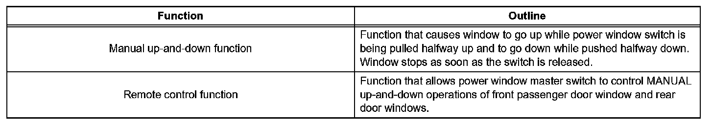 POWER WINDOW CONTROL SYSTEM (w/o Jam Protection Function)SYSTEM DESCRIPTION