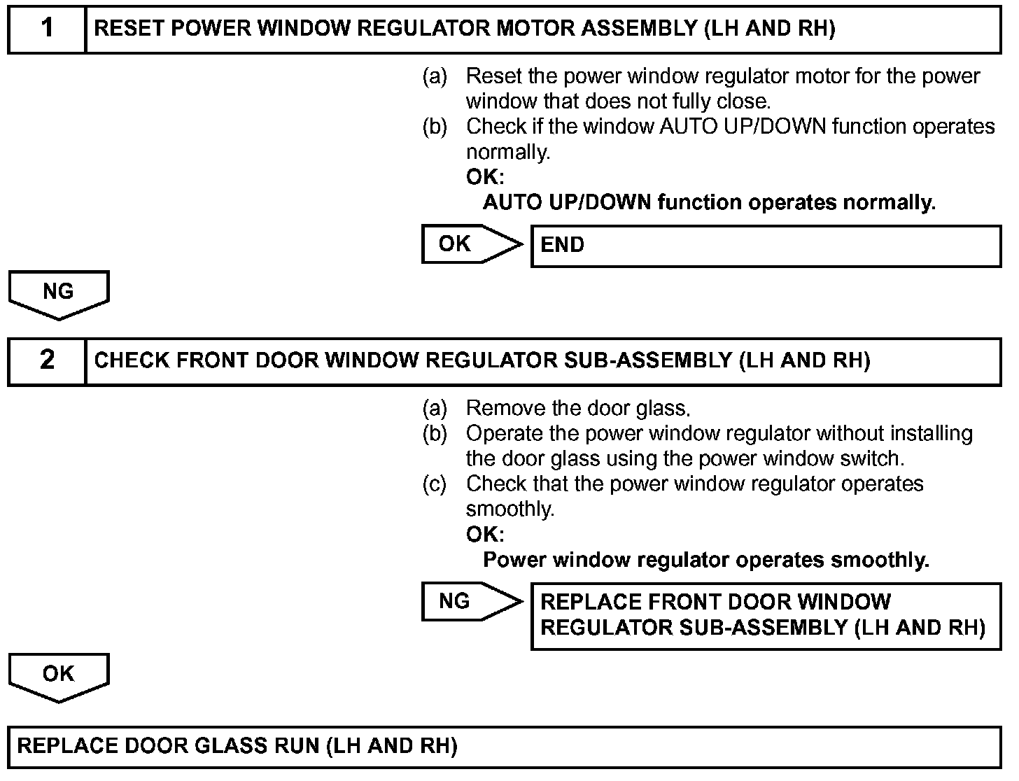 If the AUTO UP operation does not fully close the power window, the cause may be one or more of the following: