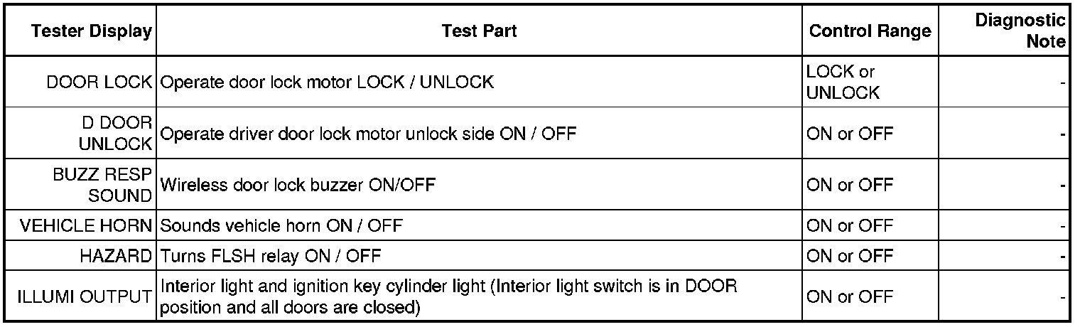 DOOR LOCK: WIRELESS DOOR LOCK CONTROL SYSTEM: DATA LIST / ACTIVE TEST