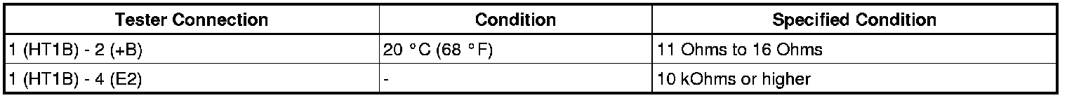 If the resistance is not as specified, replace the heated oxygen sensor.