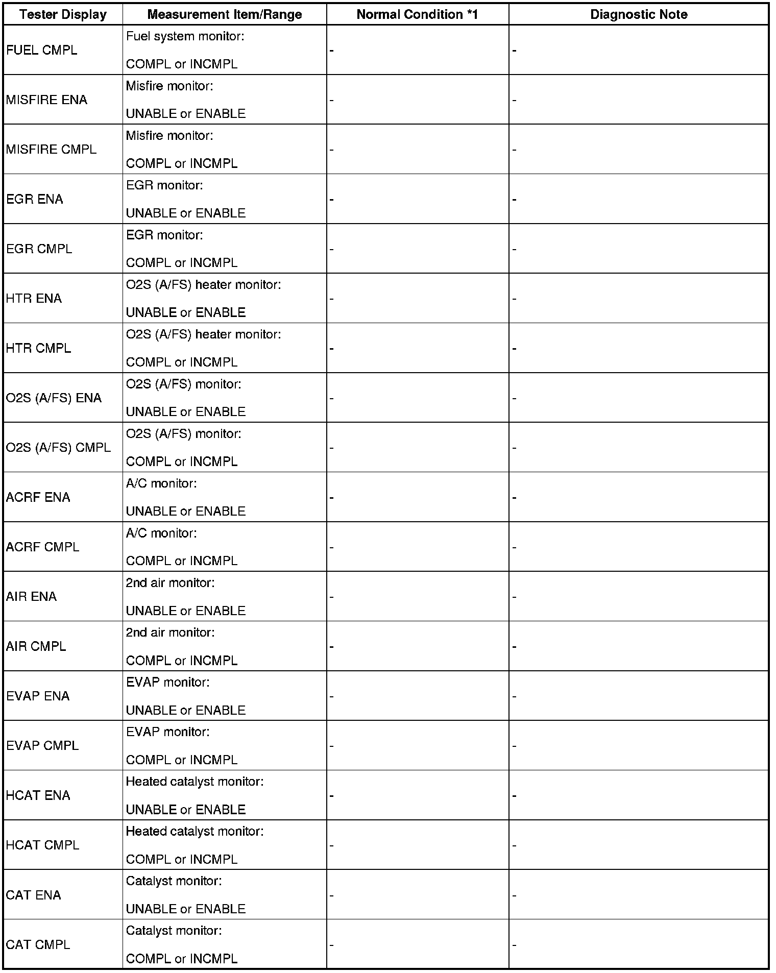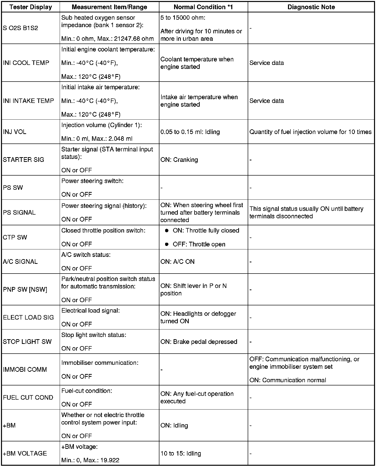 - *1: If no idling conditions are specified, the shift lever should be in the N or P (neutral) position, and the A/C switch and all accessory switches should be OFF.