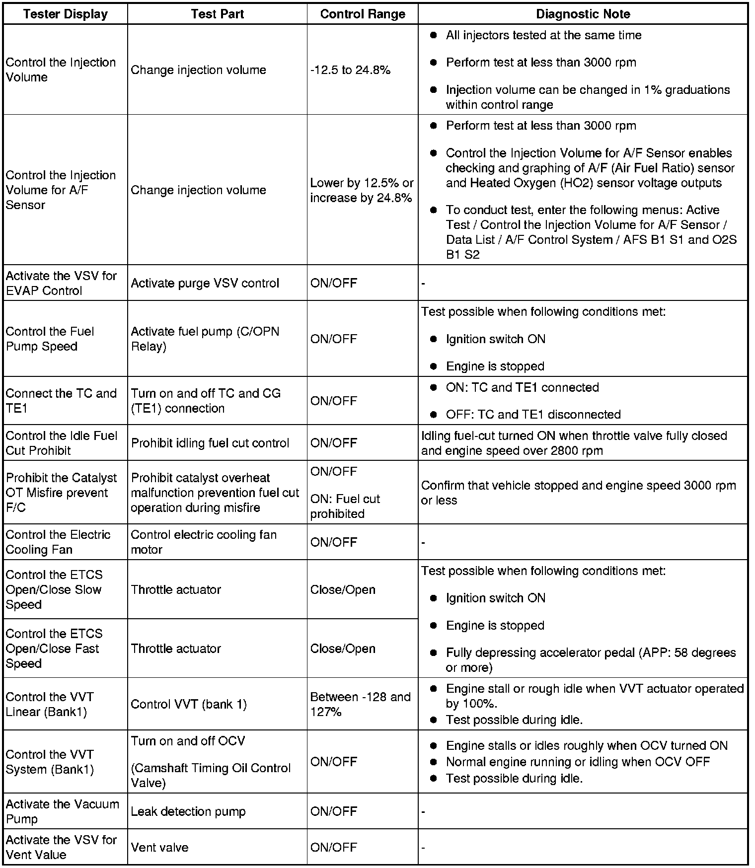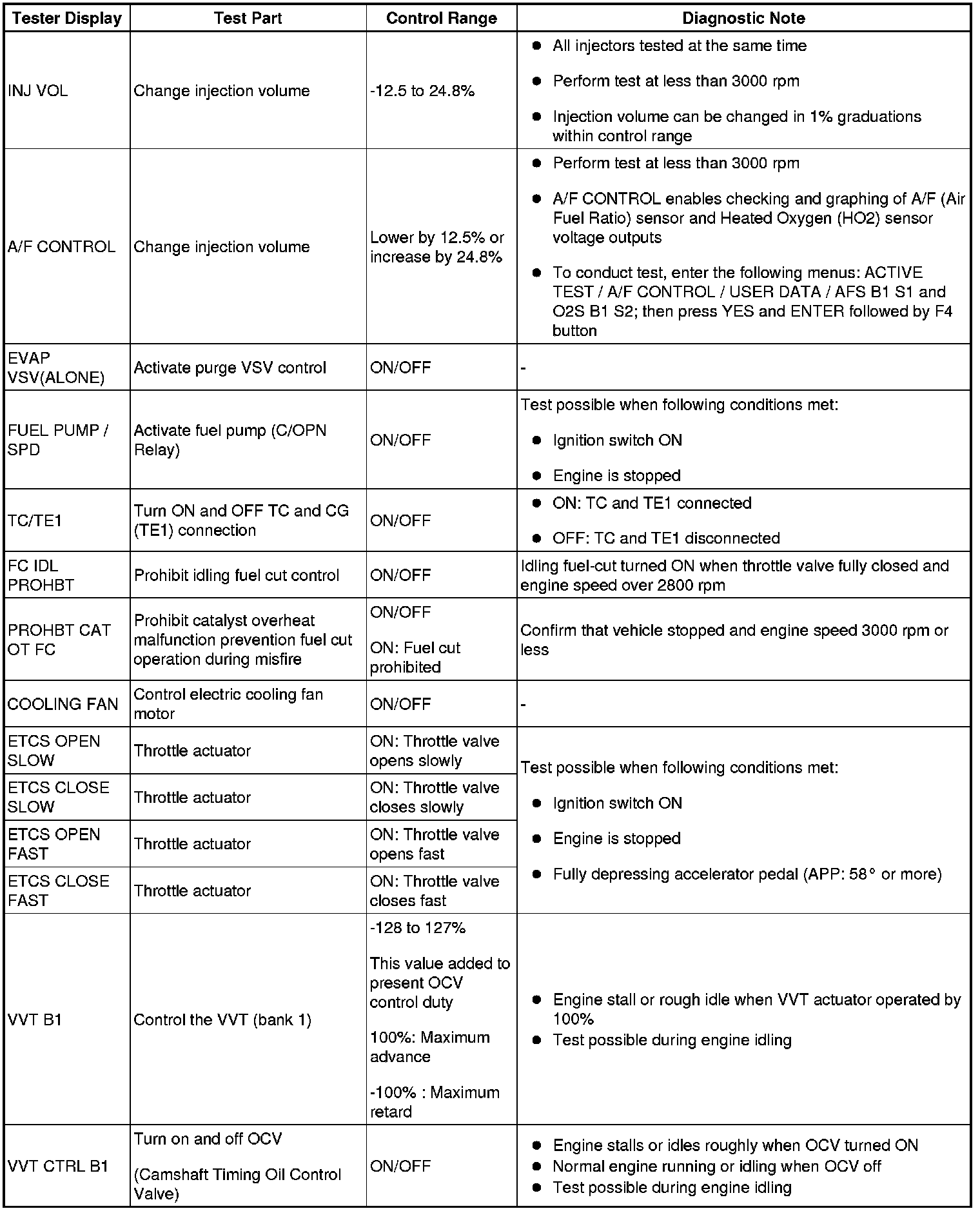 HINT: Using an intelligent tester or a Techstream to perform the Active Tests allows relays, VSVs, actuators and other items to be operated without removing any parts. This non-intrusive functional inspection can be very useful because intermittent operation may be discovered before parts or wiring is disturbed. Performing Active Tests early in troubleshooting is one way to save diagnostic time. Data List information can be displayed while performing Active Tests.