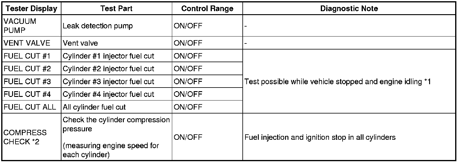 HINT: *2: When performing the Active Test item "Check the Cylinder Compression" and then cranking the engine, the ECM stops the fuel injection and ignition, and measures the engine speed for each cylinder.