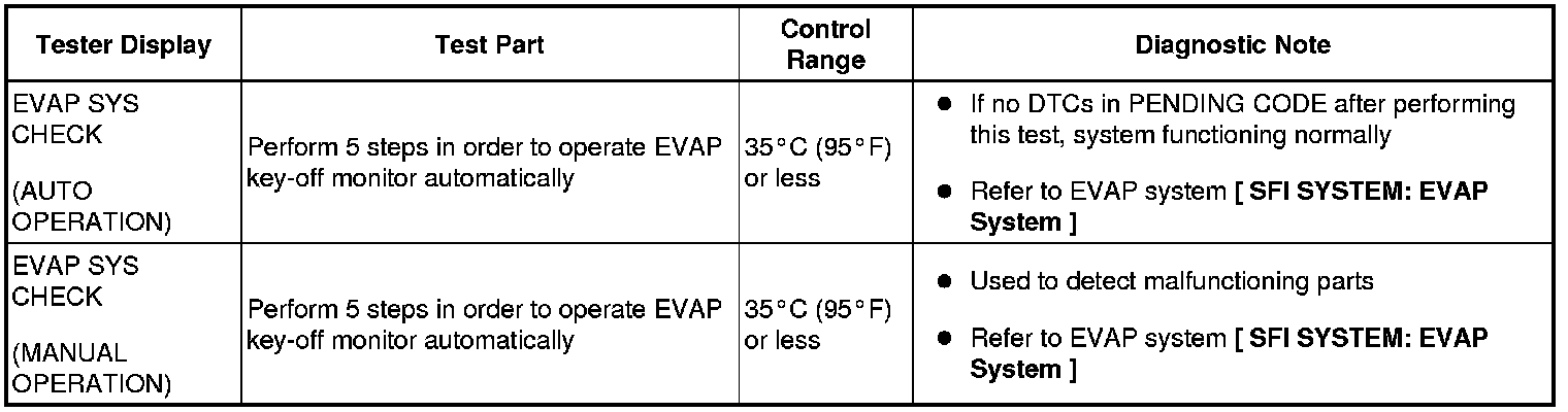 (e) Perform the SYSTEM CHECK by referring to the table below.