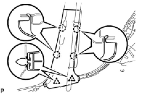 - Replace the front pillar garnish clip with a new one when the front pillar garnish is removed.