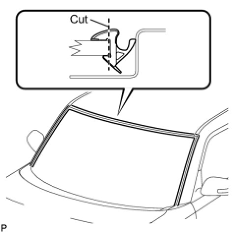 (a) Using a knife, cut off the windshield outside moulding, as shown in the illustration.