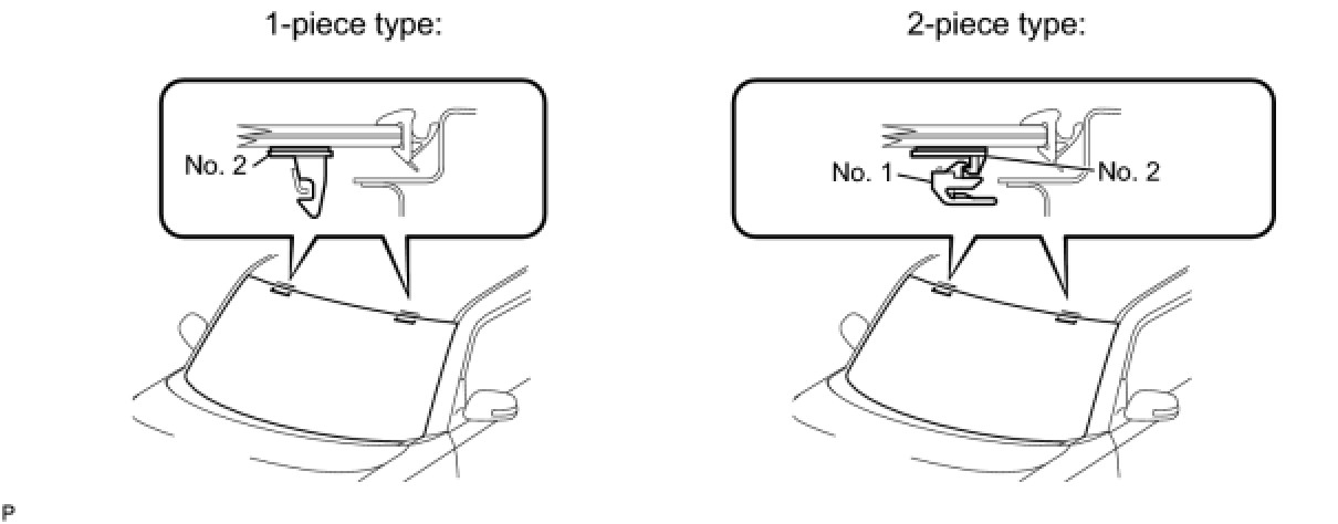 - There are No. 1 and No. 2 stoppers on the windshield glass as shown in the illustration. Be careful not to damage the windshield glass when cutting off the adhesive.