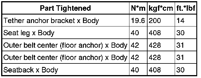 SERVICE SPECIFICATIONS: SEAT: TORQUE SPECIFICATIONS