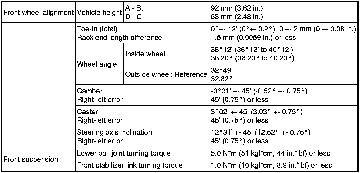 SERVICE SPECIFICATIONS: SUSPENSION: SERVICE DATA